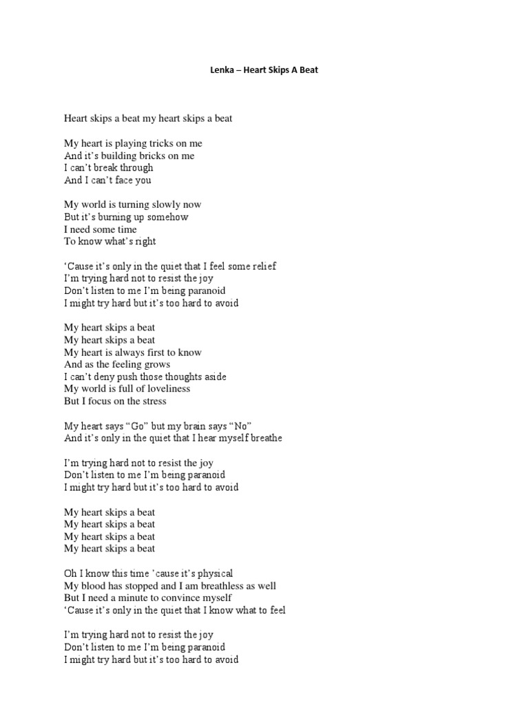 Buck Owens My Heart Skips A Beat Lyrics Genius Lyrics from images.genius.com A heart palpitation is a feeling that the heart is fluttering, skipping a beat or beating too fast and could be a symptom of an abnormal heart rhythm (arrhythmia). When this happens, i check my pulse and it feels like my heart. Most of the time, there's no reason to worry. It now happens several times a day and it feels as though my heart is skipping a beat when this happens. In particular, when a person breathes, the heart rate usually speeds up a few beats and goes slow again. Generally, heart palpitations aren't life threatening. You may also feel these sensations in your throat or neck. Feeling your heart suddenly and unexpectedly starting to race or pound, fluttering or skipping beats is a sensation called heart palpitations.
